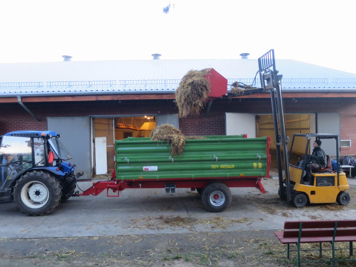 Sam nie sądziłem że to będzie dobry sposób na wywalanie obornika. Wózek muszę przyznać jest bardzo zwrotny. Bardzo dobrze sprawdza się hydrauliczna łycha.