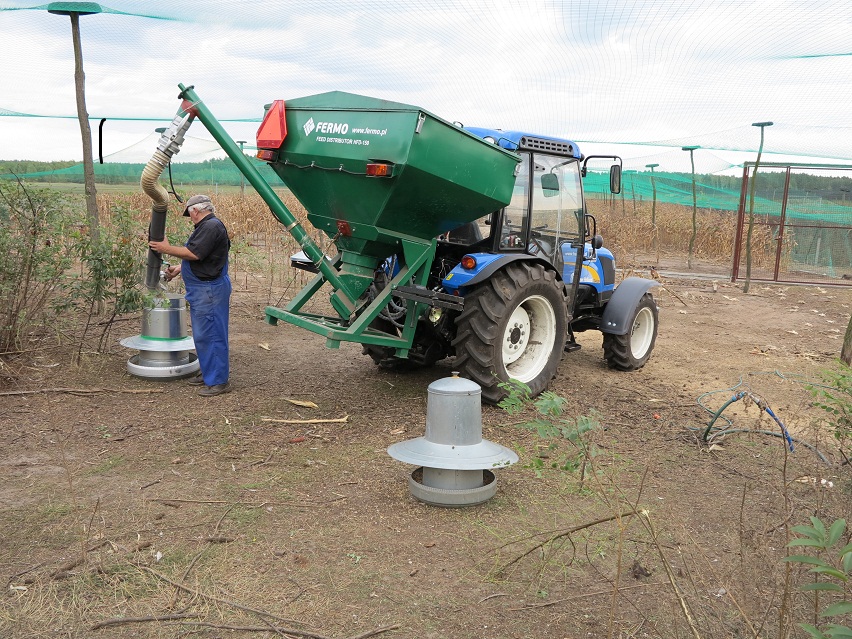 Tak się karmi bażanty dystrybutorem paszy.